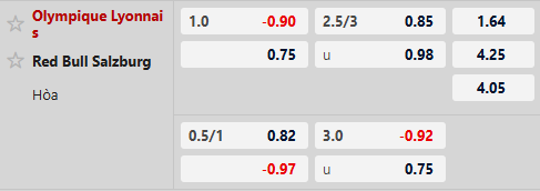 Thông tin tỷ lệ kèo bóng đá Lyon vs RB Salzburg: