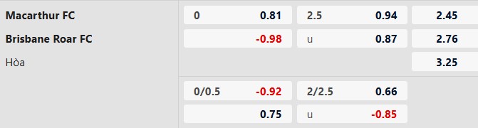 Thông tin tỷ lệ Macarthur vs Brisbane Roar: