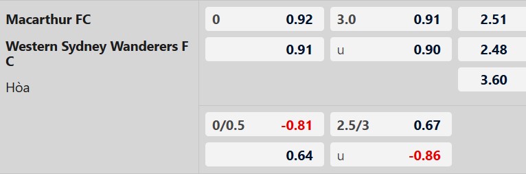 Soi kèo châu Á Macarthur vs Western Sydney: