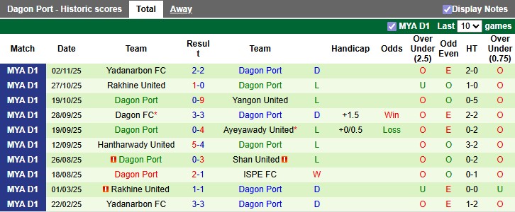 Phong độ gần đây của Dagon Port khá kém với 1 thắng, 4 hòa và 5 thua trong 10 trận gần nhất. Đặc biệt trên sân khách, họ chưa có nổi một chiến thắng nào khi hòa 5 và thua 5 trong 10 chuyến xa nhà gần đây. Dagon Port thường chơi phòng ngự số đông, nhưng hệ thống phòng thủ lại thiếu chắc chắn, khiến họ dễ bị cuốn vào những trận đấu có nhiều bàn thắng.