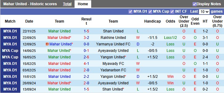Thống kê phong độ Mahar United vs Dagon Port:
