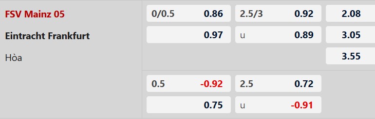 Soi kèo châu Á Mainz vs Eintracht Frankfurt: