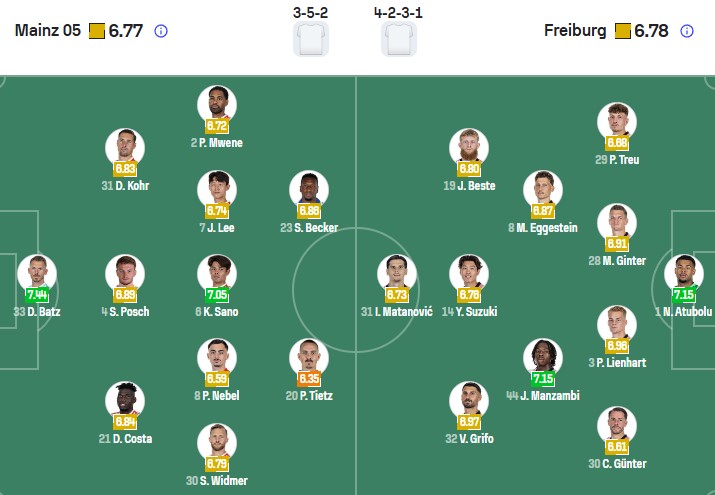 Đội hình dự kiến Mainz vs Freiburg:
