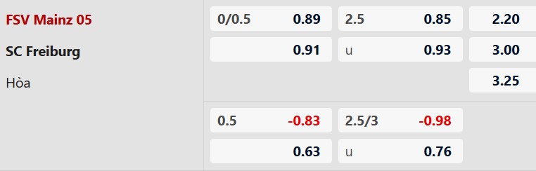 Thông tin tỷ lệ bóng đá Mainz vs Freiburg: