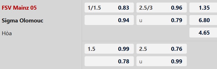 Soi kèo châu Á Mainz vs Sigma Olomouc: