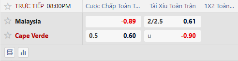 Thông tin tỷ lệ Malaysia vs Cape Verde: