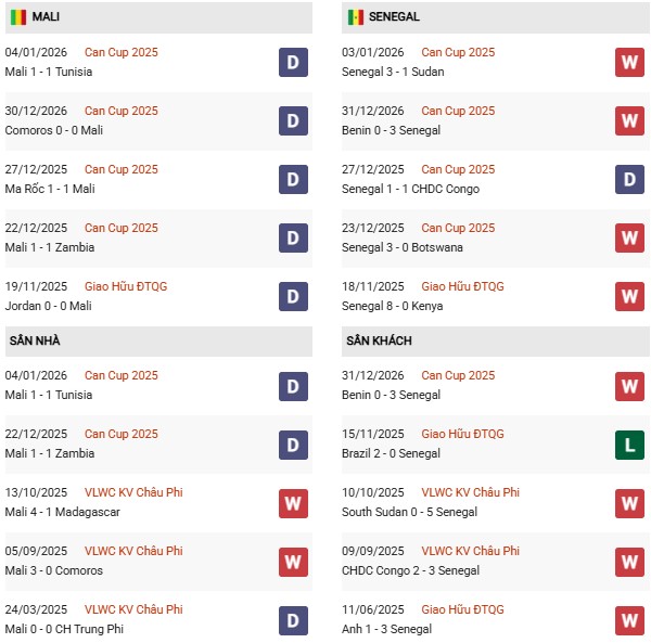 Với những ưu thế vượt trội về thành tích đối đầu, phong độ gần đây và lực lượng thi đấu, nhiều khả năng Senegal sẽ giành chiến thắng cách biệt ít nhất 2 bàn trước Mali để vào bán kết tại AFCON 2025.