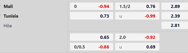 Thông tin tỷ lệ cược Mali vs Tunisia: