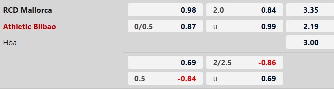 Soi kèo châu Á Mallorca vs Athletic Bilbao:
