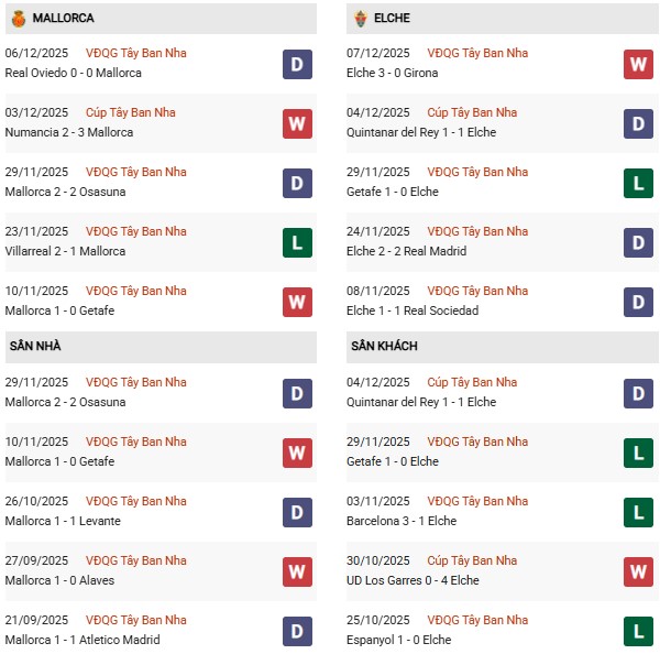 - Mallorca thắng 2, hòa 5, thua 3 trong 10 trận đối đầu Elche gần đây.