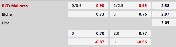 Thông tin tỷ lệ bóng đá Mallorca vs Elche:
