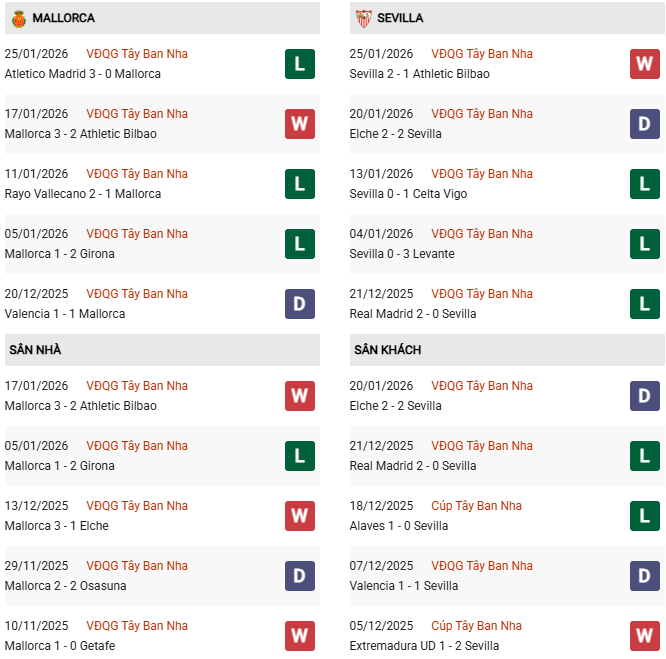 - Trên sân nhà, Mallorca thắng 2, thua 4 trước Sevilla.