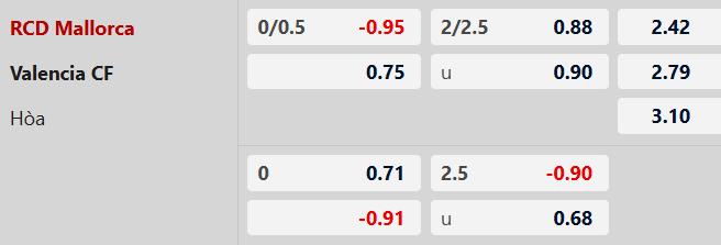 Lẻ bàn thắng: 6/10 trận so tài gần nhất giữa 2 CLB có tổng bàn thắng không chia hết cho 2. Chưa hết, 8/10 trận mới đây của Mallorca lẫn 7/10 trận vừa xong của Valencia cũng chứng kiến điều tương tự.