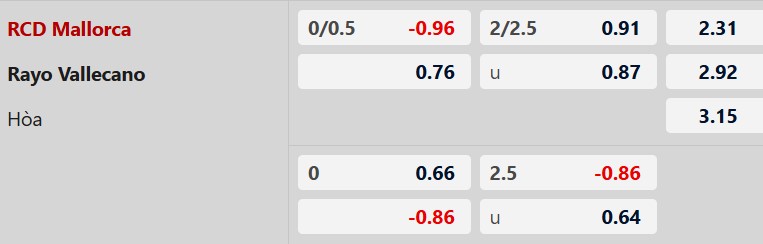 Thông tin tỷ lệ cược Mallorca vs Vallecano: