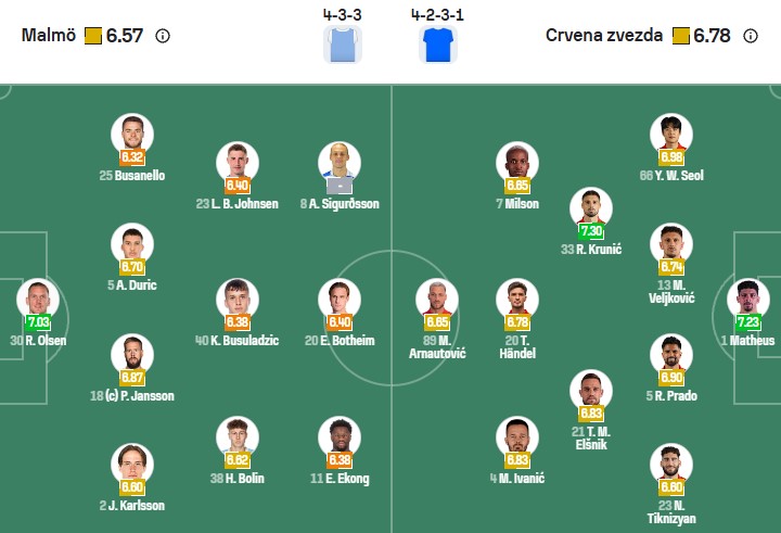 Đội hình dự kiến Malmo vs Crvena Zvezda: