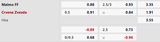 Thông tin tỷ lệ Malmo vs Crvena Zvezda: