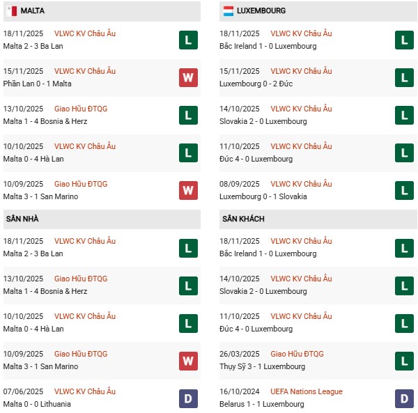 Dẫu vậy, không thể phủ nhận Luxembourg vẫn sở hữu chất lượng đội hình nhỉnh hơn Malta. Họ từng có những trận đấu chơi không tệ, nhưng sự thiếu ổn định và hàng thủ lỏng lẻo khiến đội bóng này thường xuyên trả giá. Đáng chú ý, Luxembourg thi đấu sân khách khá kém khi toàn thua trong các chuyến hành quân gần đây.