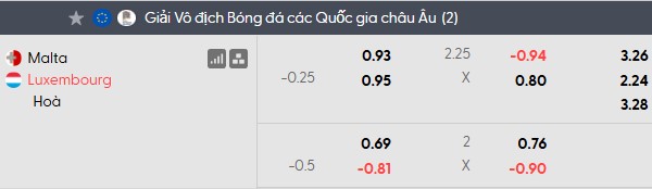 Thông tin tỷ lệ cược Malta vs Luxembourg: