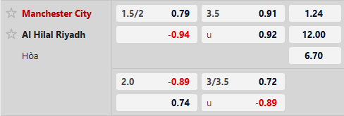 Thông tin tỷ lệ kèo bóng đá Man City vs Al Hilal: