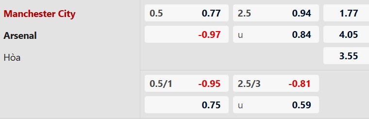 Thông tin tỷ lệ kèo bóng đá Man City vs Arsenal: