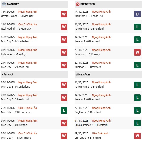 - Trên sân nhà, Man City thắng 3, thua 1 trước Brentford.