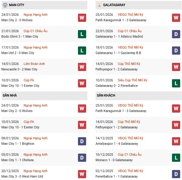 Lý thuyết là thế, còn lại Man City sẽ làm được bao nhiêu thì chưa ai biết. Tin tốt là họ vừa có lại niềm vui khi đánh bại đội bét bảng Wolves vào cuối tuần trước. Về phía Galatasaray, họ lại đang có sự ổn định rất lớn. CLB này chỉ thua 1/9 trận gần nhất còn Man City chỉ thắng 3/8 trận vừa xong.