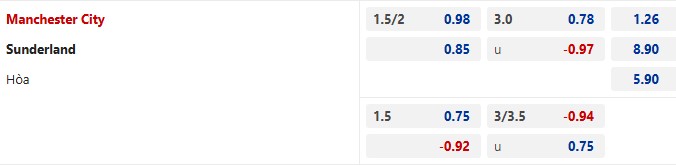 Thông tin tỷ lệ kèo bóng đá Man City vs Sunderland: