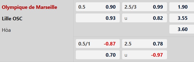 Thông tin tỷ lệ kèo bóng đá Marseille vs Lille: