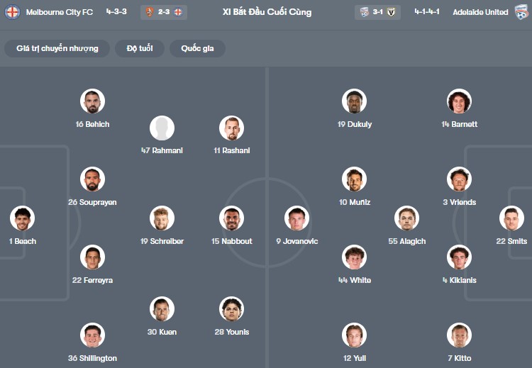 Thông tin lực lượng Melbourne City vs Adelaide: