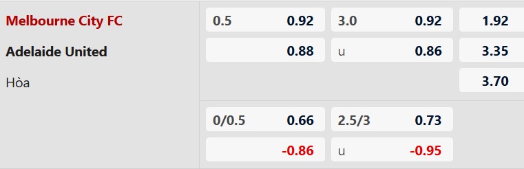 Con số 3 bàn thắng là mức kèo khá cao nhưng hoàn toàn hợp lý với lối chơi của hai đội. Cả Melbourne City và Adelaide United đều đang sở hữu hàng công đạt hiệu suất cao. 3/5 trận gần nhất của Melbourne City có từ 3 bàn trở lên, trong khi Adelaide cũng vừa nổ súng tới 3 lần ở vòng trước. Với tâm thế cởi mở của chủ nhà và sự quyết tâm của đội khách, một trận cầu đôi công hấp dẫn với nhiều bàn thắng được ghi là kịch bản rất dễ xảy ra.