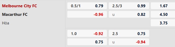 Thông tin tỷ lệ kèo Melbourne City vs Macarthur: