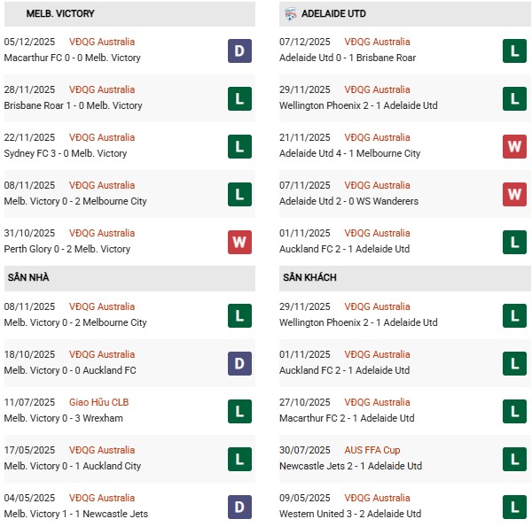 Thống kê phong độ Melbourne Victory vs Adelaide: