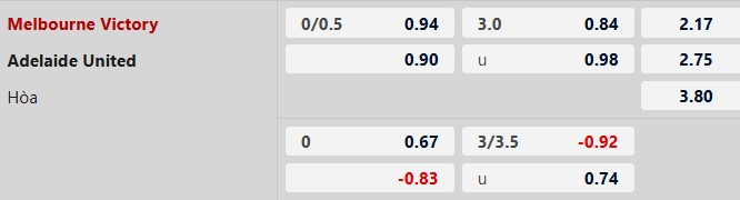 Thông tin tỷ lệ cược Melbourne Victory vs Adelaide: