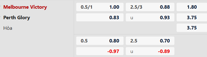 Thông tin tỷ lệ kèo Melbourne Victory vs Perth Glory: