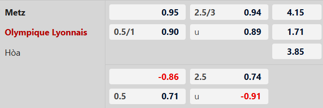 Thông tin tỷ lệ bóng đá Metz vs Lyon: