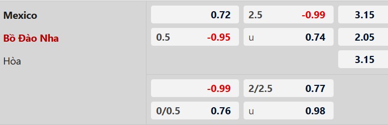 Thông tin tỷ lệ kèo bóng đá Mexico vs Bồ Đào Nha: