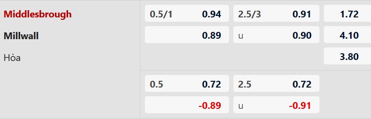 Middlesbrough chấp 3/4 bàn cho thấy giới chuyên môn đánh giá cao lợi thế sân nhà của đội bóng áo đỏ. Dù Millwall có phong độ tốt, đây vẫn là trận đấu mà kinh nghiệm và sự chắc chắn của Middlesbrough có thể tạo ra khác biệt.