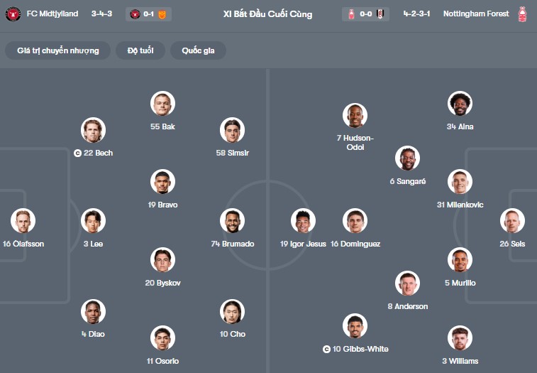 Đội hình dự kiến Midtjylland vs Nottingham: