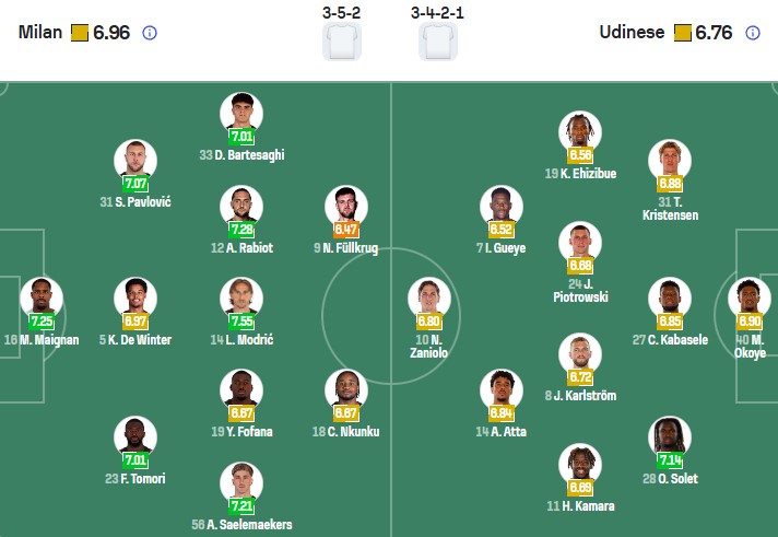 Đội hình dự kiến Milan vs Udinese: