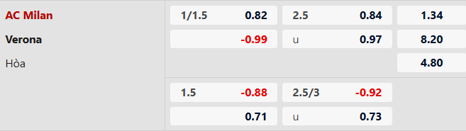 Nhận định kèo Milan vs Verona: