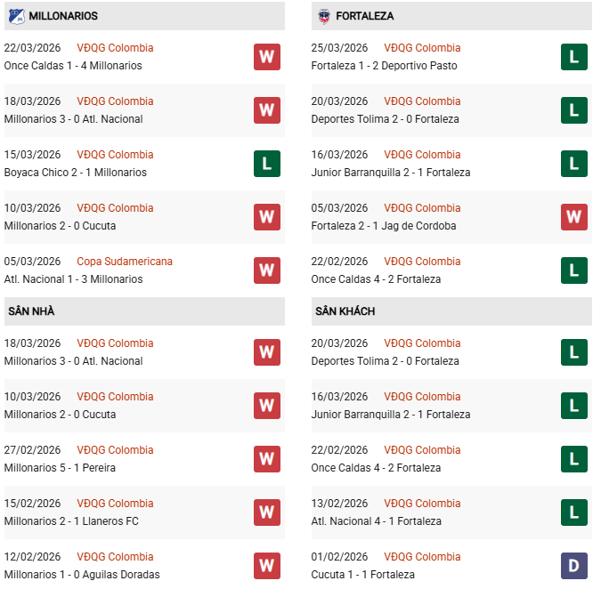 5 chuyến hành quân gần nhất thuộc giải VĐQG Colombia, Fortaleza CEIF chỉ mang về được 1 điểm. Chưa dừng lại ở đây, Fortaleza CEIF chỉ thua và ... thua sau 9 cuộc đụng độ Millonarios mới nhất. Tựu trung lại, chẳng thể tìm ra một cơ sở nào để tin vào đội khách trận này.