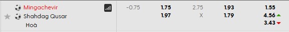 Thông tin tỷ lệ Mingachevir vs Shahdag: