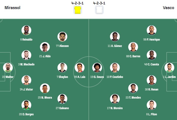 Đội hình dự kiến Mirassol vs Vasco da Gama: