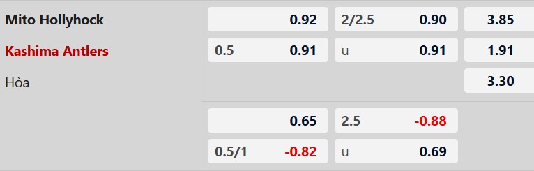 Thông tin tỷ lệ cược Mito Hollyhock vs Kashima:
