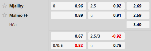 Thông tin tỷ lệ Mjallby vs Malmo: