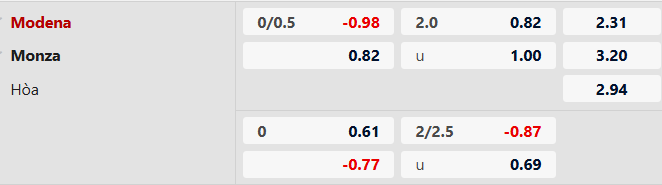 Thông tin tỷ lệ cược Modena vs Monza: