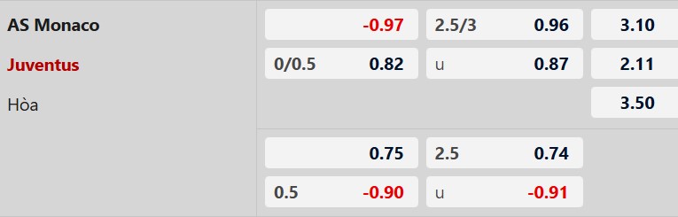 Soi kèo châu Á Monaco vs Juventus: