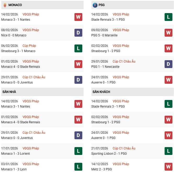 - Trên sân nhà, Monaco thắng 4, thua 5 trước PSG.