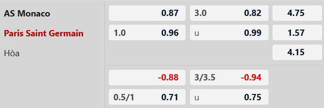 Thông tin tỷ lệ kèo bóng đá Monaco vs PSG: