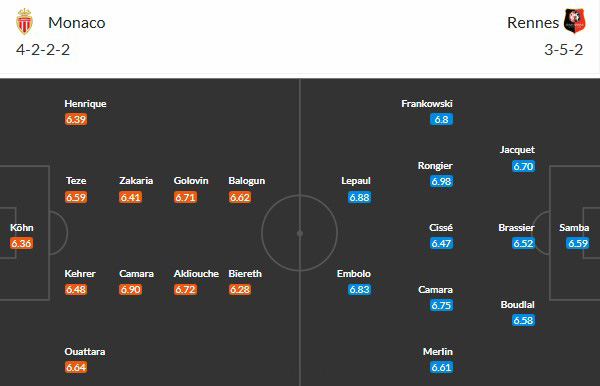Thông tin lực lượng Monaco vs Rennes: